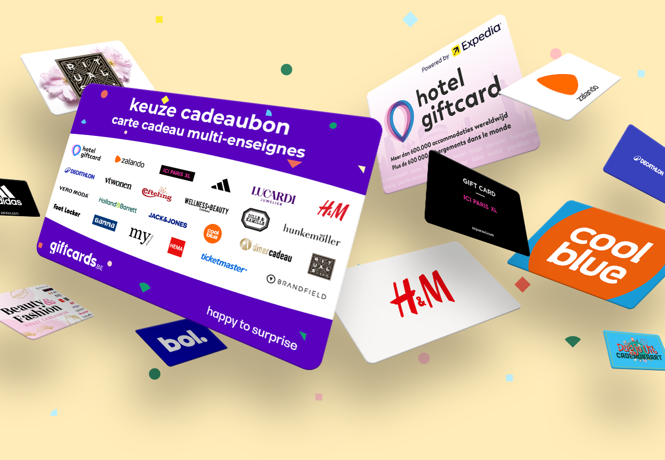Giftcards.be is dé specialist in cadeaubonnen. Wij werken samen met toonaangevende merken, winkels, hotels en entertainmentpartners om jou het beste en meest diverse aanbod te bieden. Zo zorgen we ervoor dat je altijd een geschenk vindt dat perfect past bij de gelegenheid. Want met een cadeaubon geef je een geschenk dat altijd in de smaak valt!